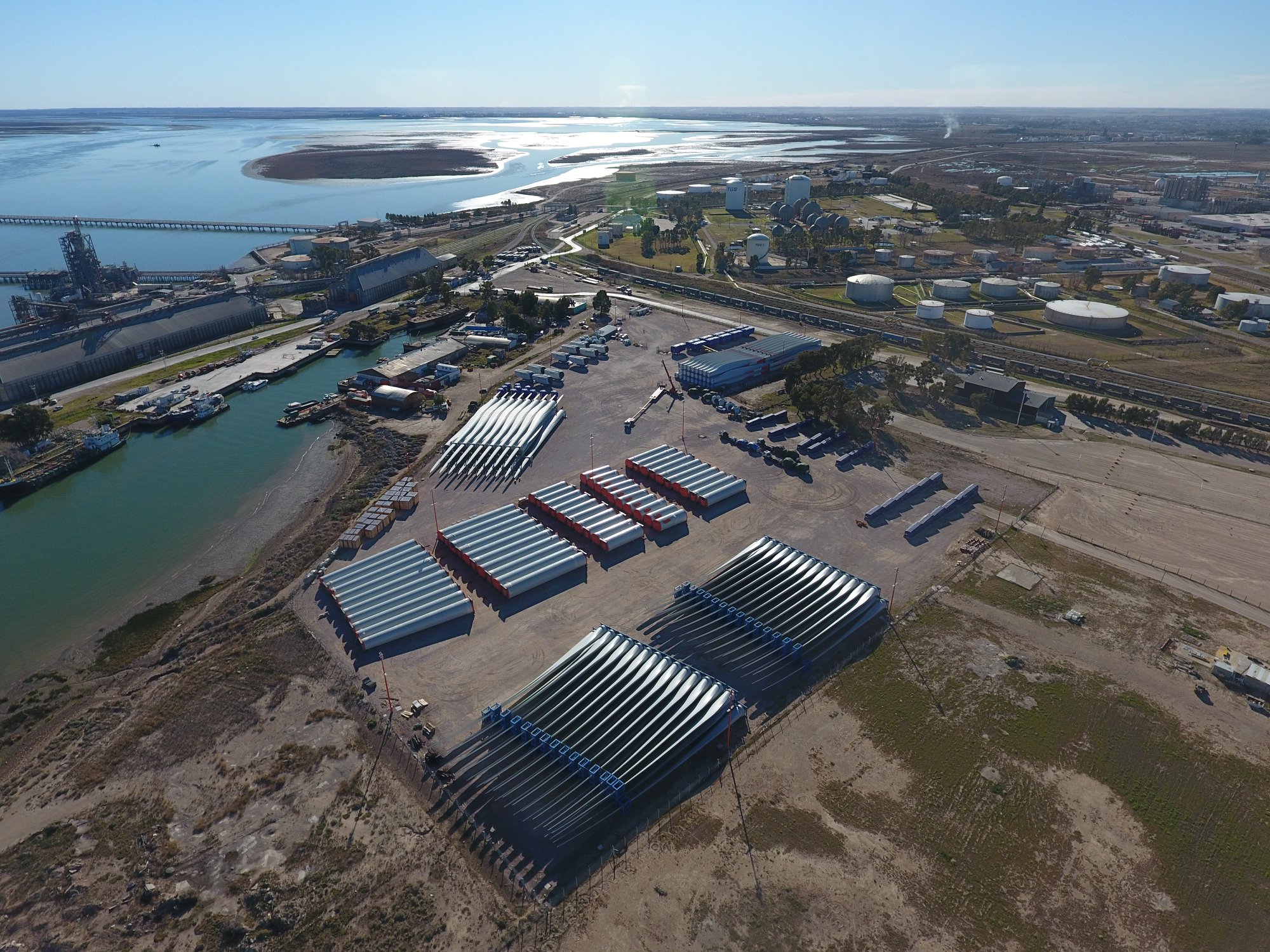 Parque eólico en Mayor Buratovich producirá 50Mw y además se almacenaron componentes en Zona Franca Bahía Blanca + Coronel Rosales para parque en Tornquist que tendrá potencia de 100Mw.