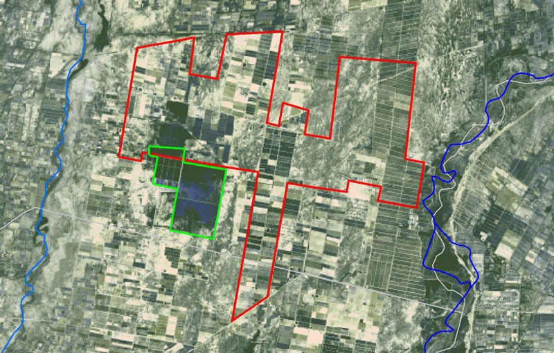 Zona de ACRE el paramillo. Area verde: planta depuradora.