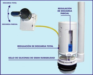 En inodoros con mochila se puede instalar un sistemas de doble descarga o bien un sistema de interrupción de descarga. El primero permite escoger al usuario entre dos volúmenes distintos de descarga de agua (6 – 9 litros ó 3 – 4 litros) mediante dos botones diferenciados. El segundo consiste en parar voluntariamente la descarga al volver a pulsar el botón.no distan tanto de las tradicionales en el precio.
