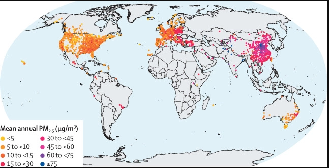 por Yuming Guo, de la Universidad Monash de Melbourne (Australia), elaboró un mapa de la evolución de las partículas finas de contaminación en las últimas