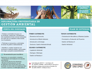 Hoy nos referimos a la carrera de Diplomatura Universitaria en Gestión Ambiental, de un año y medio de duración, dictada por la UPSO. En este caso la apertura será en Salliqueló formando parte del ciclo 2015, siguiendo con la filosofía de rotación de carreras en las distintas localidades que asume la Casa de Altos Estudios, para promover el aprendizaje, conciencia y acción.