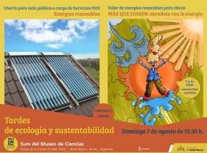 Tardes de ecología y sustentabilidad nos invita en esta oportunidad a “Energías Renovables” en el SUM del Museo de Ciencias – Castelli 3702 – Parque de la Ciudad, el Domingo 7 de Agosto a las 15:30 hs.
