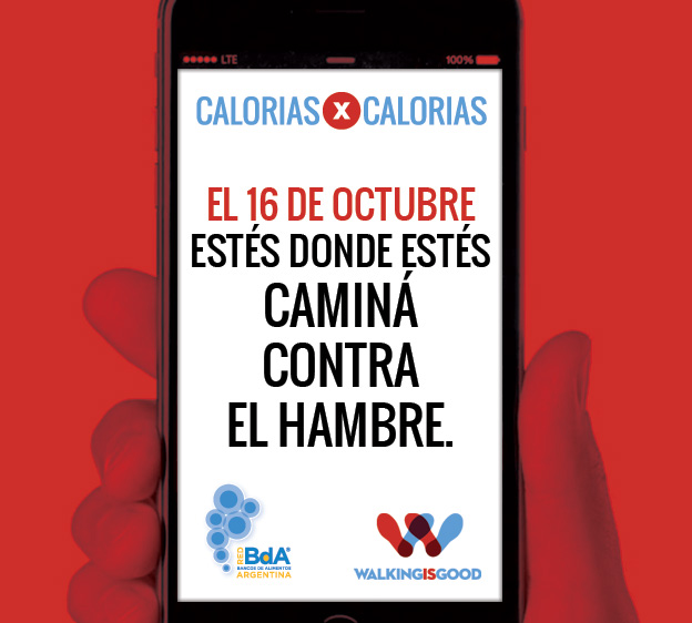 Registrate la app #CaloriasXCalorias y salí a caminar llevando tu smartphone. Todas las calorías que consumas ese día se transformarán en alimentos para los +270.000 beneficiarios de los Bancos de Alimentos 🙂