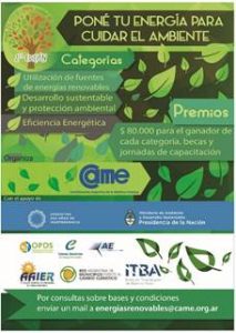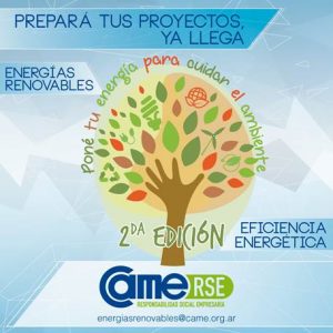 Luego del éxito de la primera edición en 2015 que contó con más de 150 inscriptos a nivel federal. La Confederación Argentina de la Mediana Empresa (CAME), a través de sus Secretarías de Responsabilidad Social y de Relaciones Institucionales, lanzó, en el marco de una nueva mesa de trabajo de Energías Renovables, la segunda edición del concurso “Poné tu energía para cuidar el ambiente”.