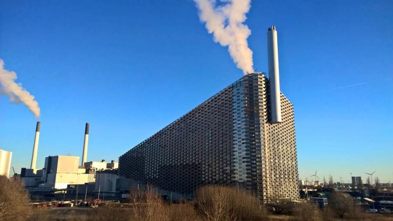 Copenhague, capital de Dinamarca se construyo una planta eléctrica y generadora de calor para la ciudad a partir de residuos. Con la particularidad de que en su techo se creara una zona de recreación que contara con una pista de Sky.