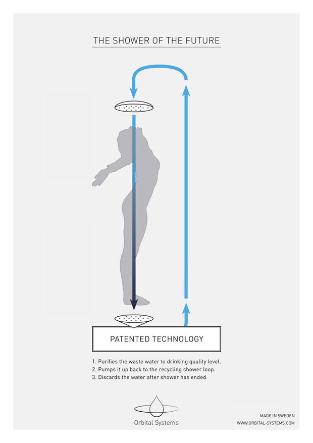Especialistas suecos crean una ducha que ahorra 90% de agua y 80% de energía. El sistema se llama OrbSys y es el mismo método de reutilización de aguas residuales que se emplea en la Estación Espacial Internacional.