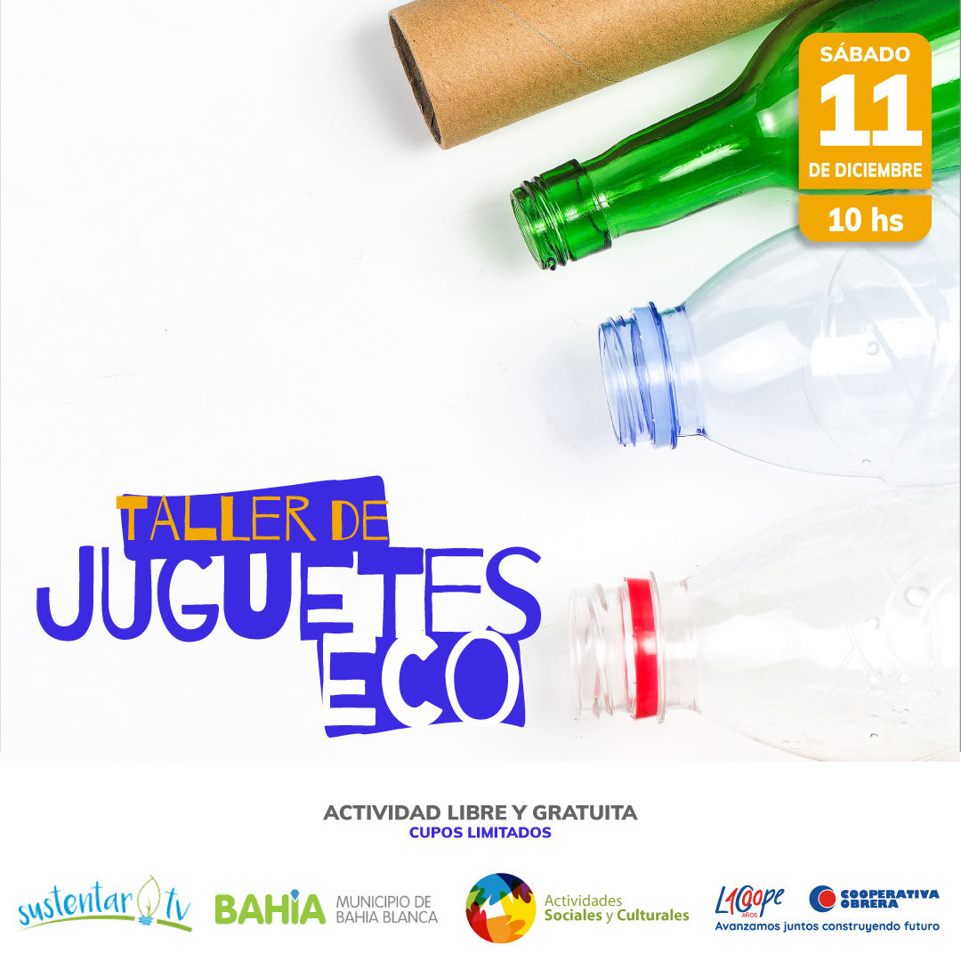 El próximo sábado 11 de diciembre de 10 a 12hs, se va a estar desarrollando un Taller de Juguetes Eco, en el Parque Independencia, gracias a SustentarTv, la Cooperativa Obrera y el Municipio de Bahía Blanca,