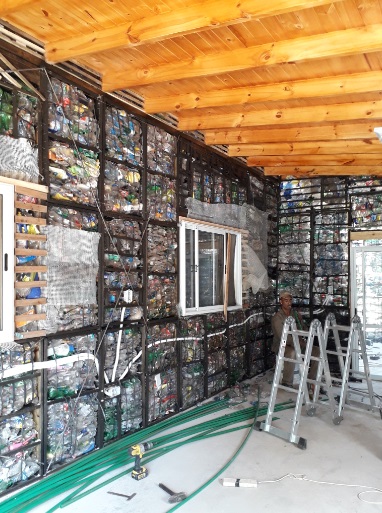- Por su construcción: Un Edificio de 57 m2, sus paredes fueron construidas con botellas pets prensadas y luego revocadas de forma tradicional,lo que convierte al Molino en una construcción de excelente nivel térmico,techo de madera y chapa y un área destinado al secado con techo de policarbonato.