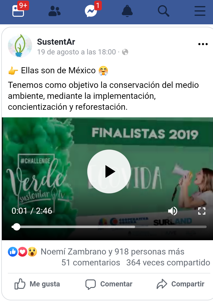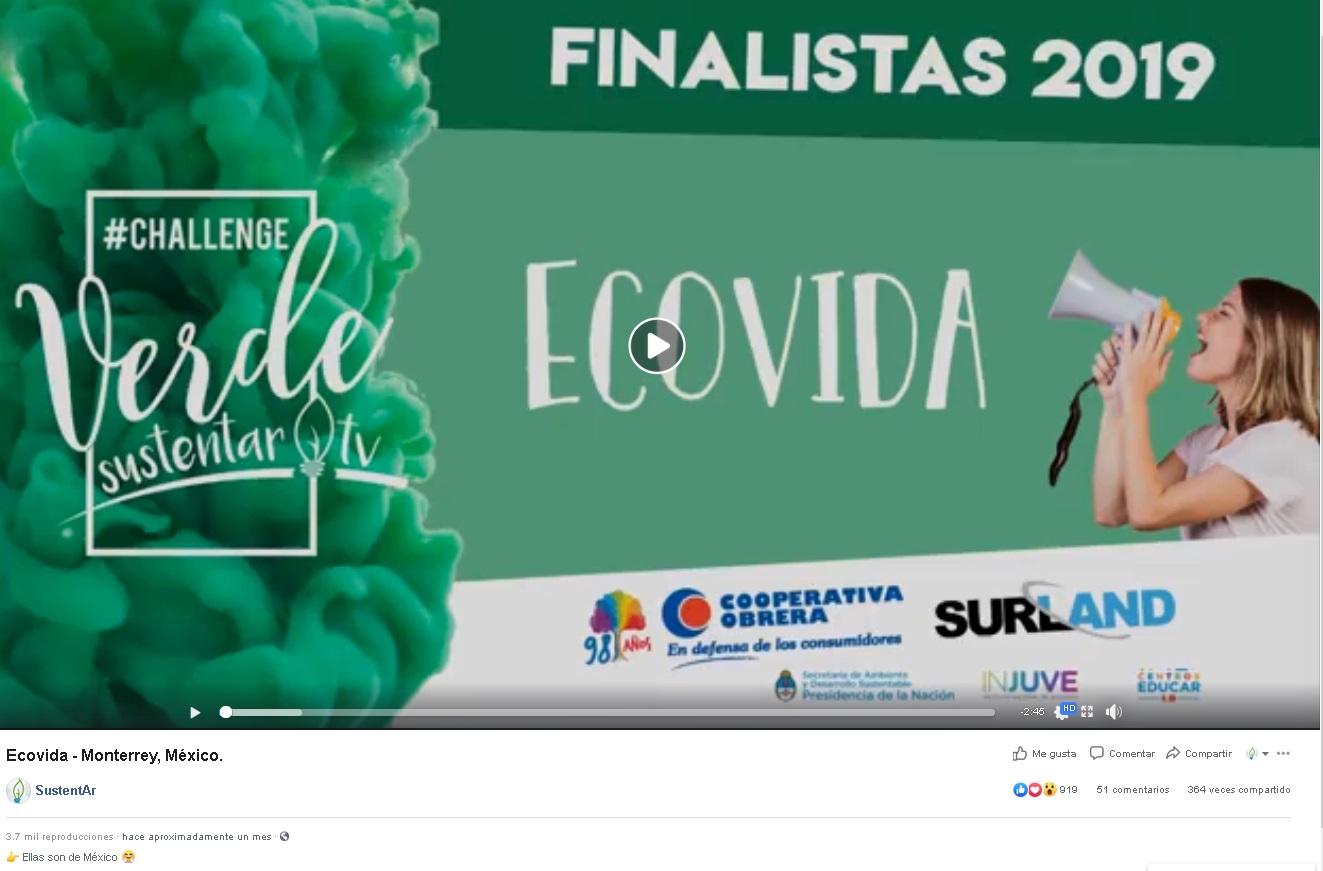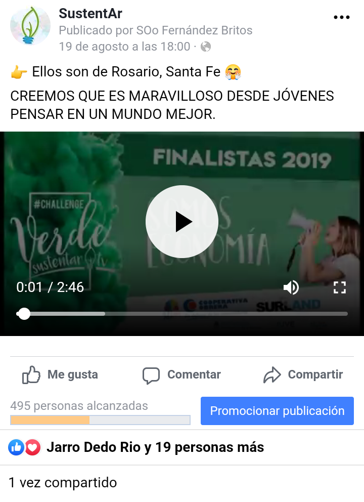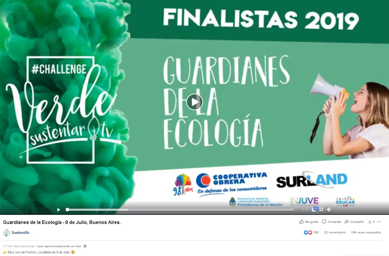 Brigada ecológica de Tucumán, con una amplia ventaja sobre los demás equipos, un alcance de más de 19 mil personas un total de 6.5 mil reproducciones, 1400 me gusta y 134 comentarios.