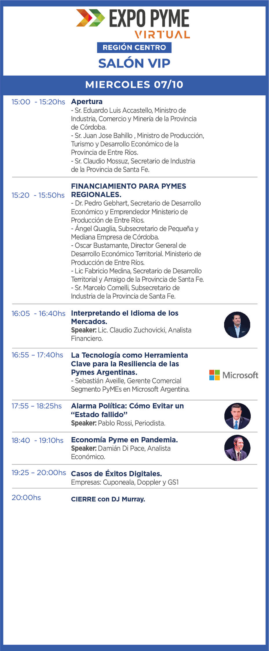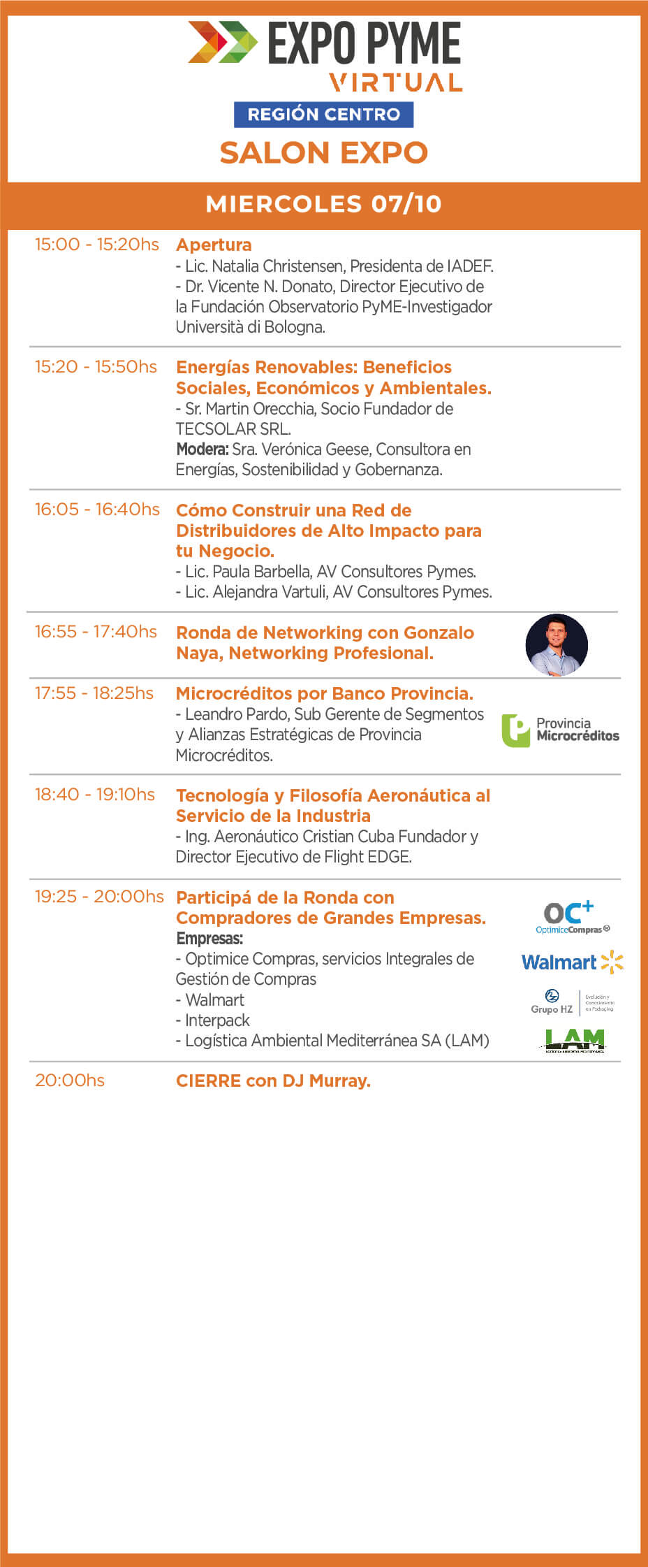 Conocé la Agenda de la Expo Pymer Virtual Argentina que se llevará a cabo este 7 y 8 de octubre 2020.