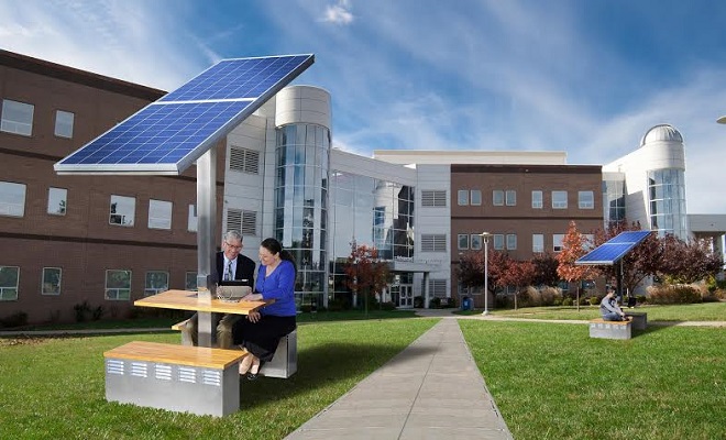 Y si estás pensando en que las mesas durarían poco a causa del vandalismo, en CarrierClass explican que los componentes eléctricos estpan totalmente encerrados e imposibles de acceder por el usuario. Están diseñados arquitectónicamente y construido de acero inoxidable. Los paneles solares son paneles de calidad comercial de alta calidad construidos para cumplir o exceder todos los estándares industriales aplicables solares