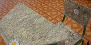 Juego de mesa y sillas realizadas con placas aglomeradas