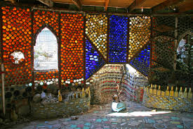 En Sima Valley, California, donde todo un pueblo conocido como «Bottle Village de la abuela Prisbey», se construyó a partir de vidrio reutilizado. La abuela Tressa Prisbrey, de Estados Unidos, creó un pueblo usando unos 17.000 de botellas durante 25 años.