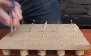 7) Una vez que se hayan pegado los corchos, vamos a dar vuelta y atornillar todos los tornillos. Es mejor elegir tornillos a clavos, ya que el agarre en los primeros resulta ser mucho más eficiente. Recuerda comprobar el largo para que no sobresalgan, y evitar accidentes.