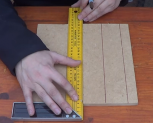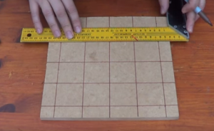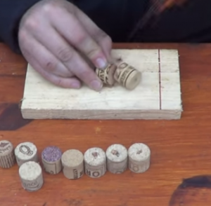 4) Una vez que tenemos marcada la tabla, lo que haremos será cortar los corchos, a una medida de 5cm. Así que marcamos el corcho y los vamos recortando, intentando mantener siempre que este recto.