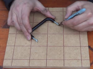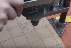3) Con un taladro iremos perforando donde se juntan las líneas, de esta manera será mucho más fácil colocar los tornillos. Recordar que el diámetro de la mecha tiene que ser mucho menor que el del tornillo.