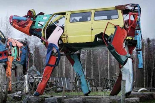 Estas esculturas Transformers, que miden 6.5 pies y están hechas de autos reciclados rusos Lada Samara Diva , son mitad hombre, mitad máquina. Esculpido por Studio Re-Creation , con sede en Neatherlands , parece que están listos para la batalla.
