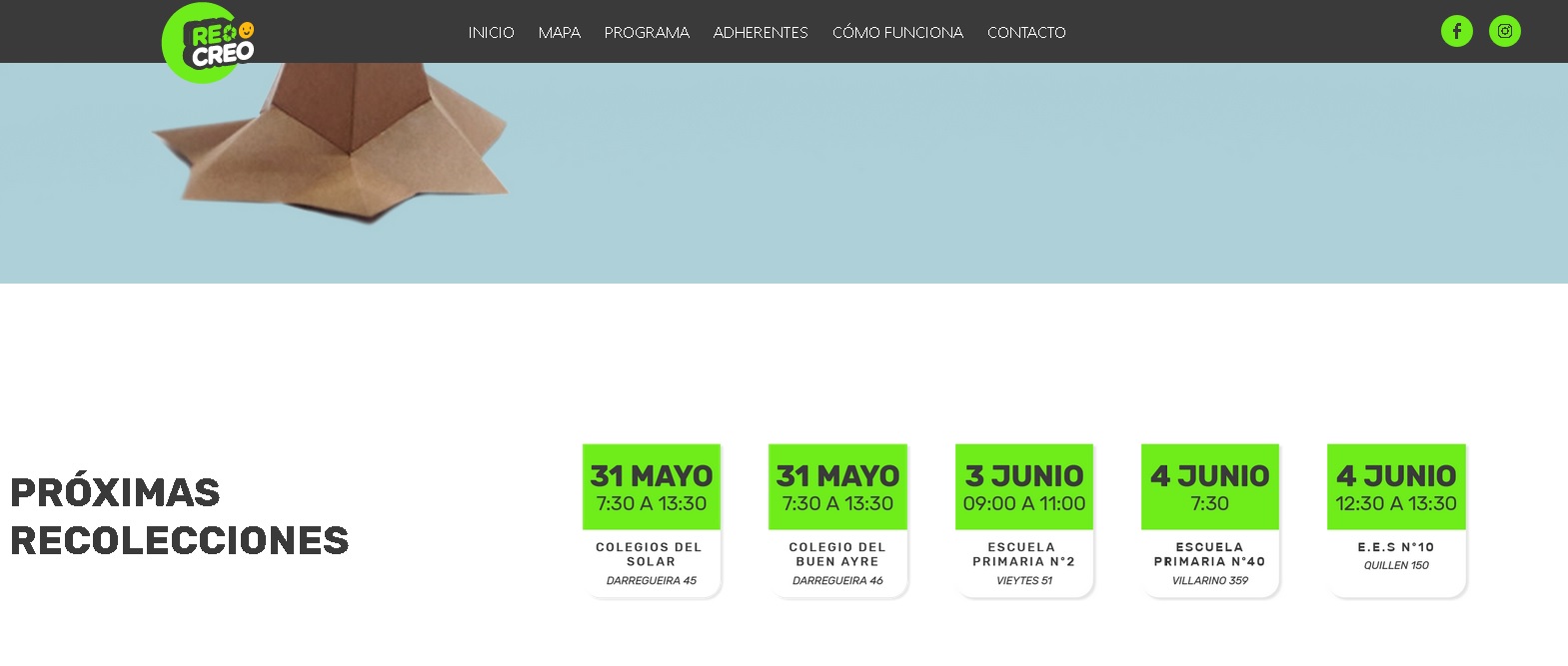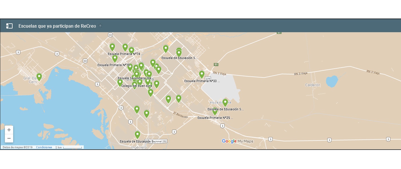 Impulsado por Smurfit Kappa Argentina, difunde las herramientas necesarias para el reciclado de residuos en alumnos de nivel primario y secundario. ReCreo propone a los alumnos seleccionar rezagos de cartón y papel para ser llevados a la escuela en días designados. En tal fecha, la empresa Smurfit Kappa se encargará del traslado a la planta de reciclado en Coronel Suárez.