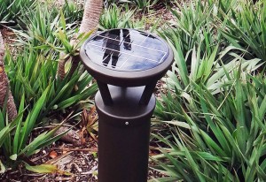 Lámpara para iluminación de la trayectoria al aire libre. Un nuevo sistema de energía solar ofrece brillante e iluminación uniforme que sea fiable y automáticamente se adapta a los cambios ambientales. El bolardo lámparas también ejecuta completamente fuera de las energías limpias, con cada lámpara de dibujo de un panel fotovoltaico integrado que genera energía solar que se almacena para un rendimiento ininterrumpido. El nuevo sistema de iluminación es la más potente luz camino con energía solar en el mercado.