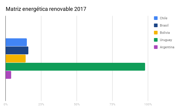 Chile 15 %, Uruguay 40% Brasil 16% Argentina 2% 2017