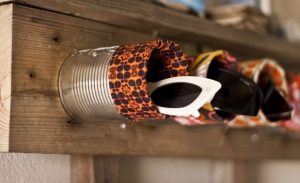 Seguramente nunca se te ocurrió, pero si envuelves con tela algunas latas por dentro y las montas sobre una tabla de madera puedes crear un original organizador de ropero donde colocar tus antejos de sol, tus medias, o cualquier otra cosa que necesites tener a mano y de manera ordenada.