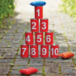 Las latas también pueden convertirse en prácticos juegos para niños, como estos zancos que puedes realizar fácilmente atándoles a las latas cordones para que, quien se suba a ellas, pueda caminar.