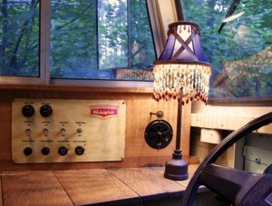 A pesar de la hermosa exterior, el kitsch ambiente retro que se encuentra en el interior es la estrella del cambio de imagen. El cliente de Winkelman tenía una visión clara para el diseño de interiores – un «cobarde, hippy, ambiente marroquí», que, a su vez, dio un nuevo y vibrante personalidad al autobús. El ambiente de los años sesenta se completa con cuentas multicolores, lámparas borla y estampados de estilo marroquí.