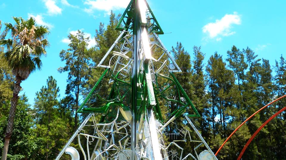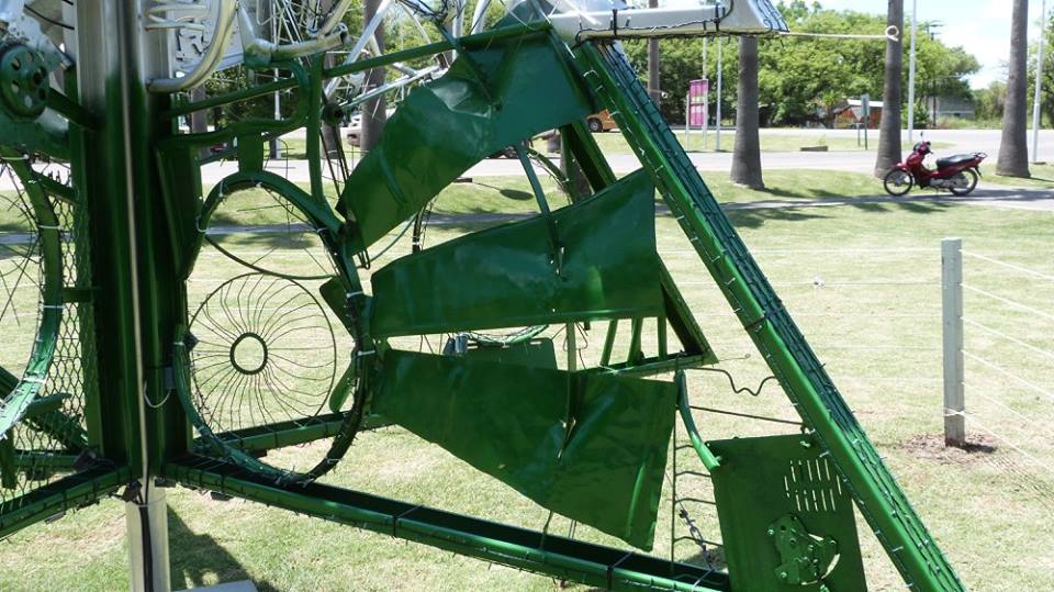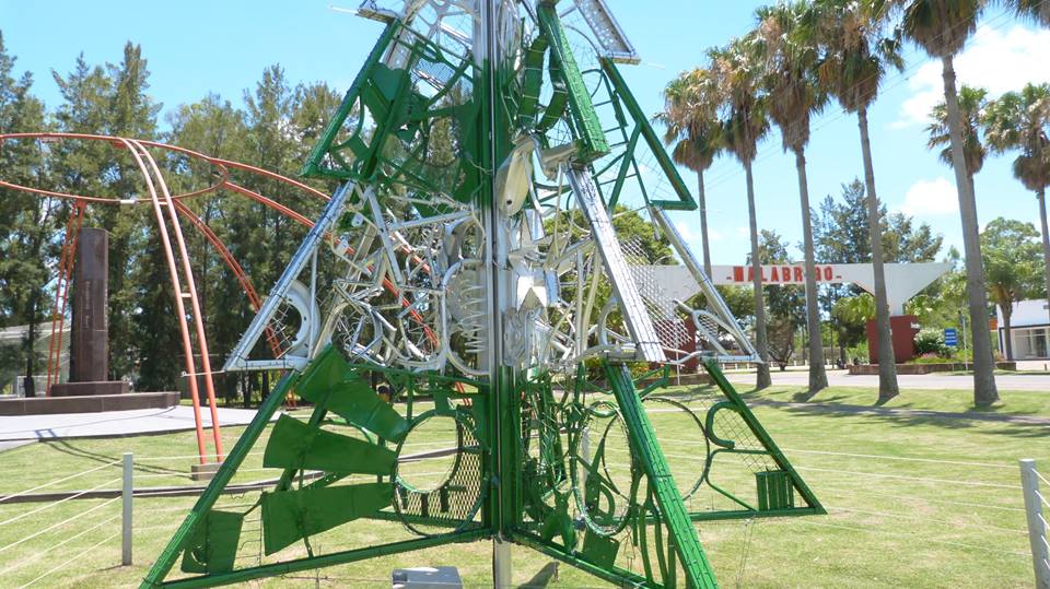 El mismo fue realizado por el artista local Heber Wellig quién desarrolló el árbol de navidad basado el 100% de sus partes en la construcción y unión exclusivamente de material recicladas y objetos de todo tipo como: Chatarra, cuadros de motos, bicicletas, llantas, escaleras de caño, tejidos, caños de escape, chapas, sillas, partes de tocadiscos, coronas de bicicletas, alambres, molinos, carreteles de alambre.