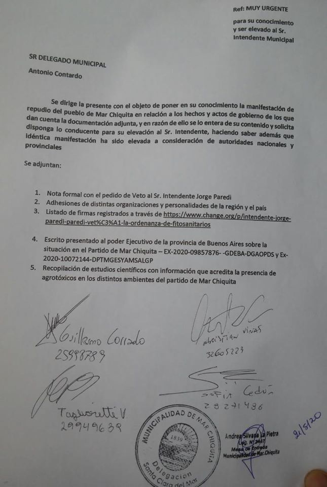 Cabe mencionar que hace más de una semana se viene solicitando el veto de la nefasta ordenanza a favor del veneno y en contra de la salud pública y medioambiente (sancionada este 13 de mayo por el HCD, en plena cuarentena), pero hasta el momento no han recibido información oficial por parte del Municipio.