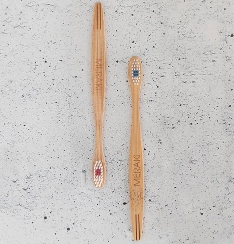 Cepillo de dientes hecho en China. Viene en caja de cartón compostable o reciclable.