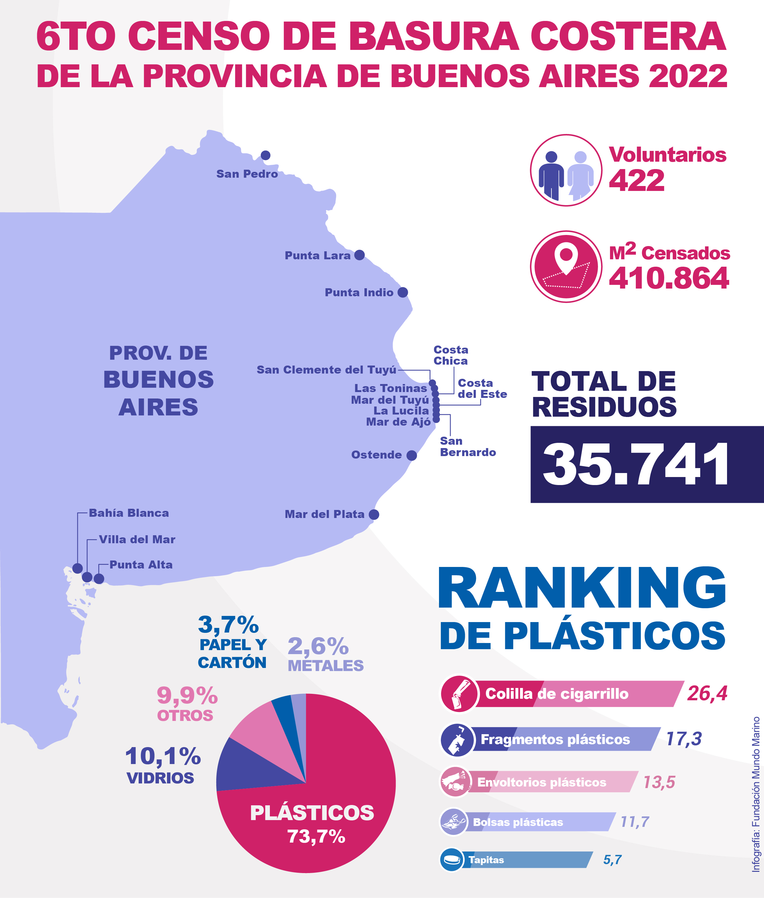 El informe indica una vez más que son los residuos más abundantes en las costas bonaerenses.