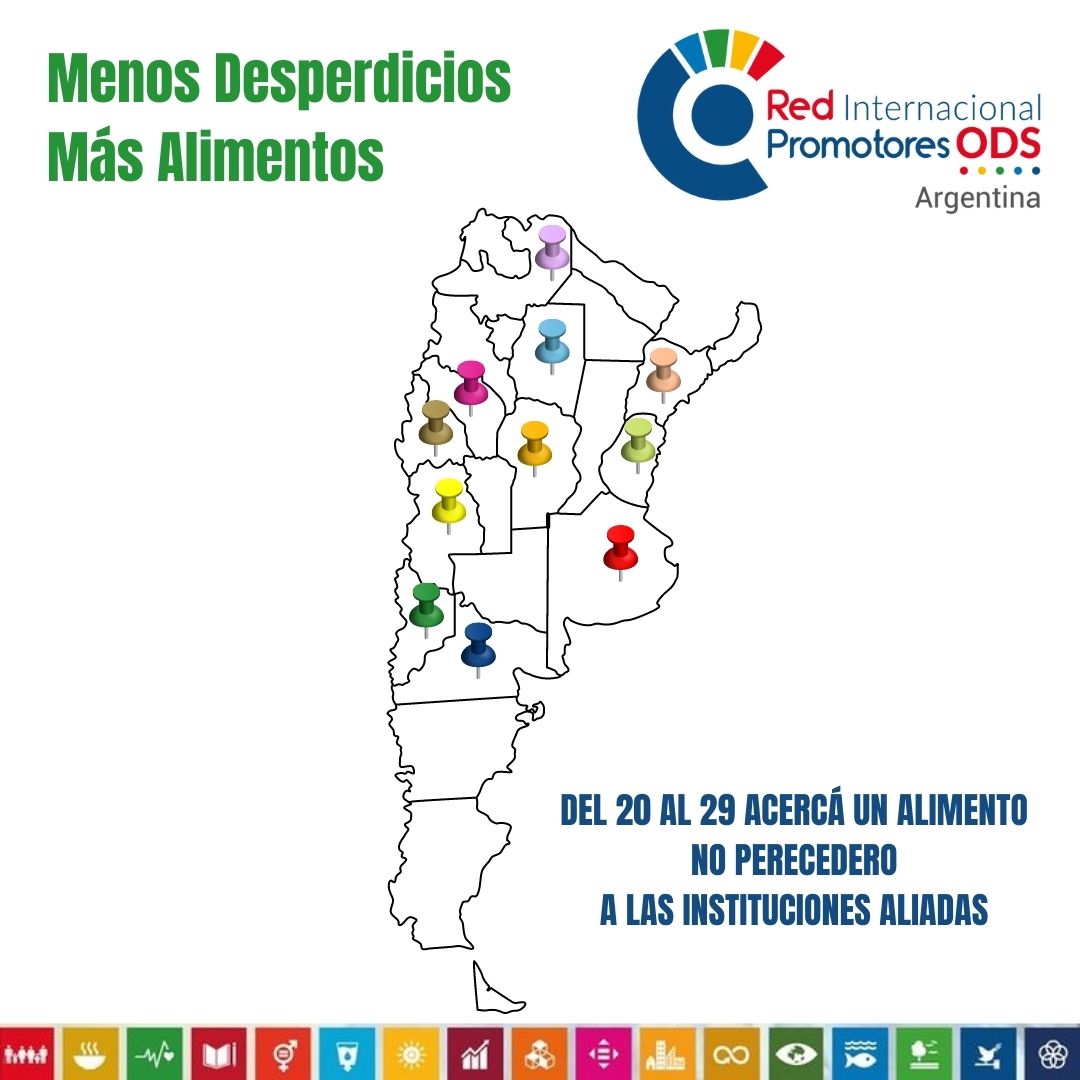 La Red Internacional de Promotores ODS Argentina trabaja en la concientización de la pérdida y desperdicio de alimentos. Se han mancomunado esfuerzos para que desde la semana del 20 al 29 de Septiembre, distintas instituciones aliadas puedan recibir tu donación.