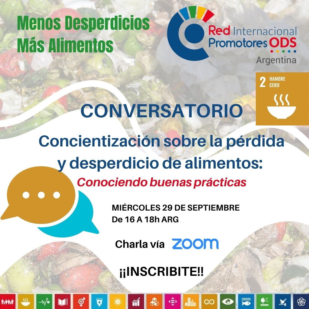 La Coordinación Nacional de Argentina de la Red Internacional de Promotores ODS, les invita a participar de este conversatorio que busca revalorizar el 29 de Septiembre, “Dia Internacional de la Concientización sobre la pérdida y desperdicio de alimentos”, establecido por las Naciones Unidas en el año 2019.