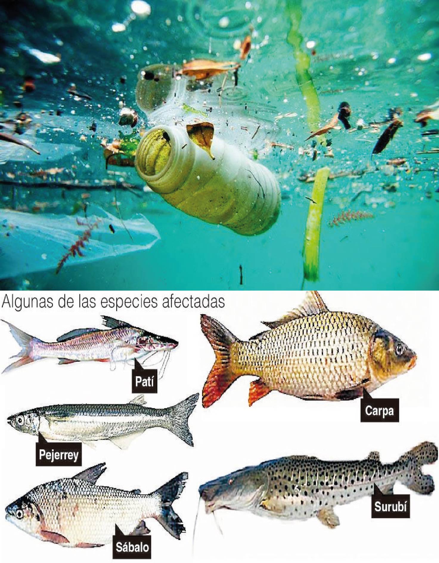 Mediante un trabajo de investigación de la Universidad Nacional de La Plata (UNLP) y del CONICET; llegaron al resultado que en el Río de la Plata, especies de peces tales como el surubí, el sábalo, el patí, el pejerrey y la carpa albergan en su tubo digestivo microplásticos.