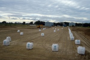 Ya se realizaron los correspondientes movimientos de suelo y limpieza del sector, se finalizó con el entoscado y actualmente se realiza la disposición de bentonita para finalizar luego con la impermeabilización, a través de una membrana soldada.