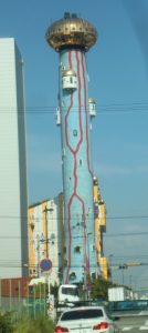 En el tope de la torre, se asoman dos tubos de escape para dos hornos de incineración