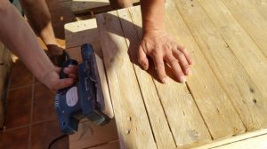 3. Armar, con el tercer pallet, dos tablas de madera para la parte superior. Una de