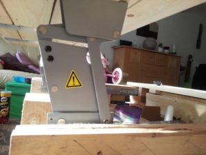 4. Instalar el mecanismo para elevar la mesa, sobre algunos restos de los listones para darle un poco más de altura.