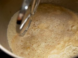 1. Mezcla en un bowl la levadura, el azúcar y el agua tibia. Deja reposar por 5 minutos.