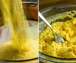 2. Una vez que el puré esté tibio, incorpora la harina de maíz y la sal. Une todos los ingredientes.