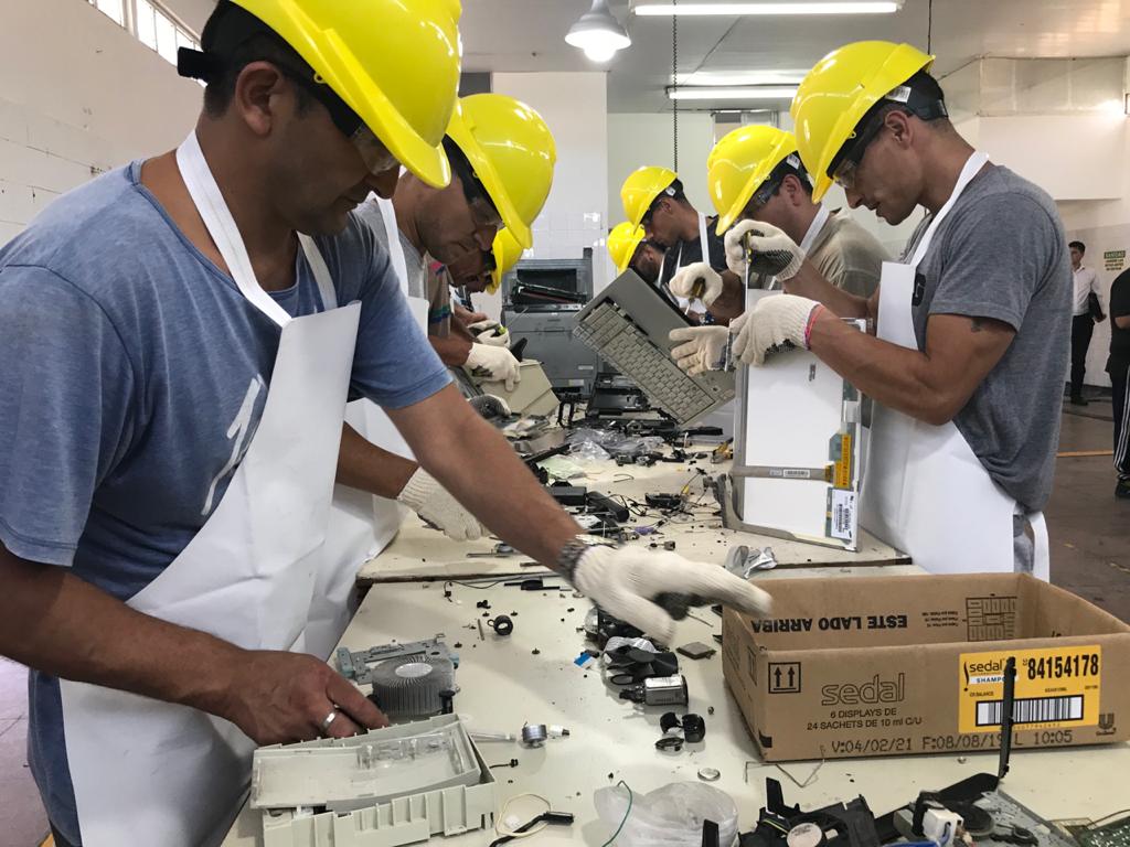 En las plantas de RAEEs, las personas privadas de su libertad reciclan este tipo de desechos separando los reutilizables como televisores, computadoras, impresoras, periféricos, etc., entregándolos a distintas instituciones; mientras que los no utilizables como cobre, estaño, distintos metales, baterías, carcasas, etc., son tratados con su debido proceso.