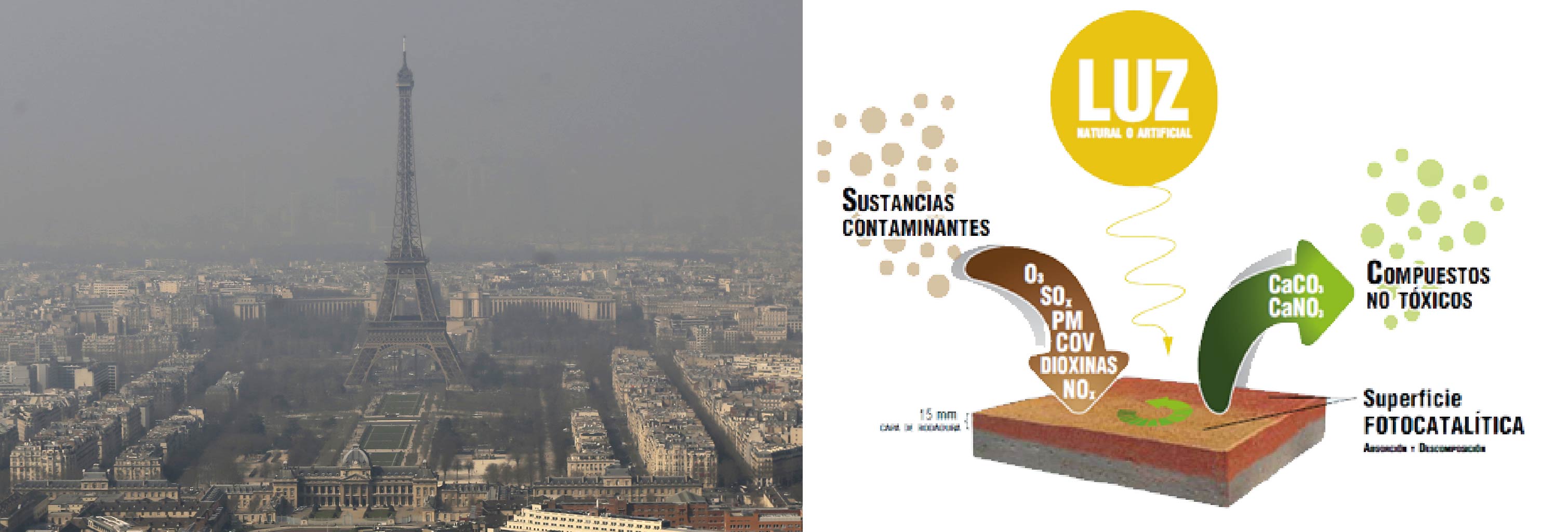 En primer lugar, el contaminante se absorbe en la superficie del material; este se oxida produciendo un compuesto inerte como los nitratos (NO3). Y finalmente, el compuesto inerte es eliminado de la superficie del material por efecto de la lluvia.