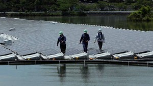 Se trata de una planta solar en Japón construida para resistir terremotos y aprovechar la refrigeración natural que proporciona el agua.