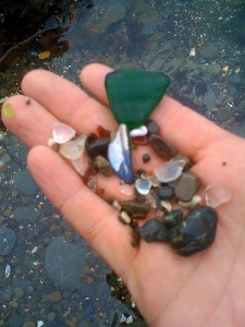 Es el caso de la playa de cristal en California, Mendocino, en los EEUU, durante 18 años fue un basurero, entre 1949 y 1967, se arrojaban a ese vertedero, entre otras cosas, botellas de todos los colores.