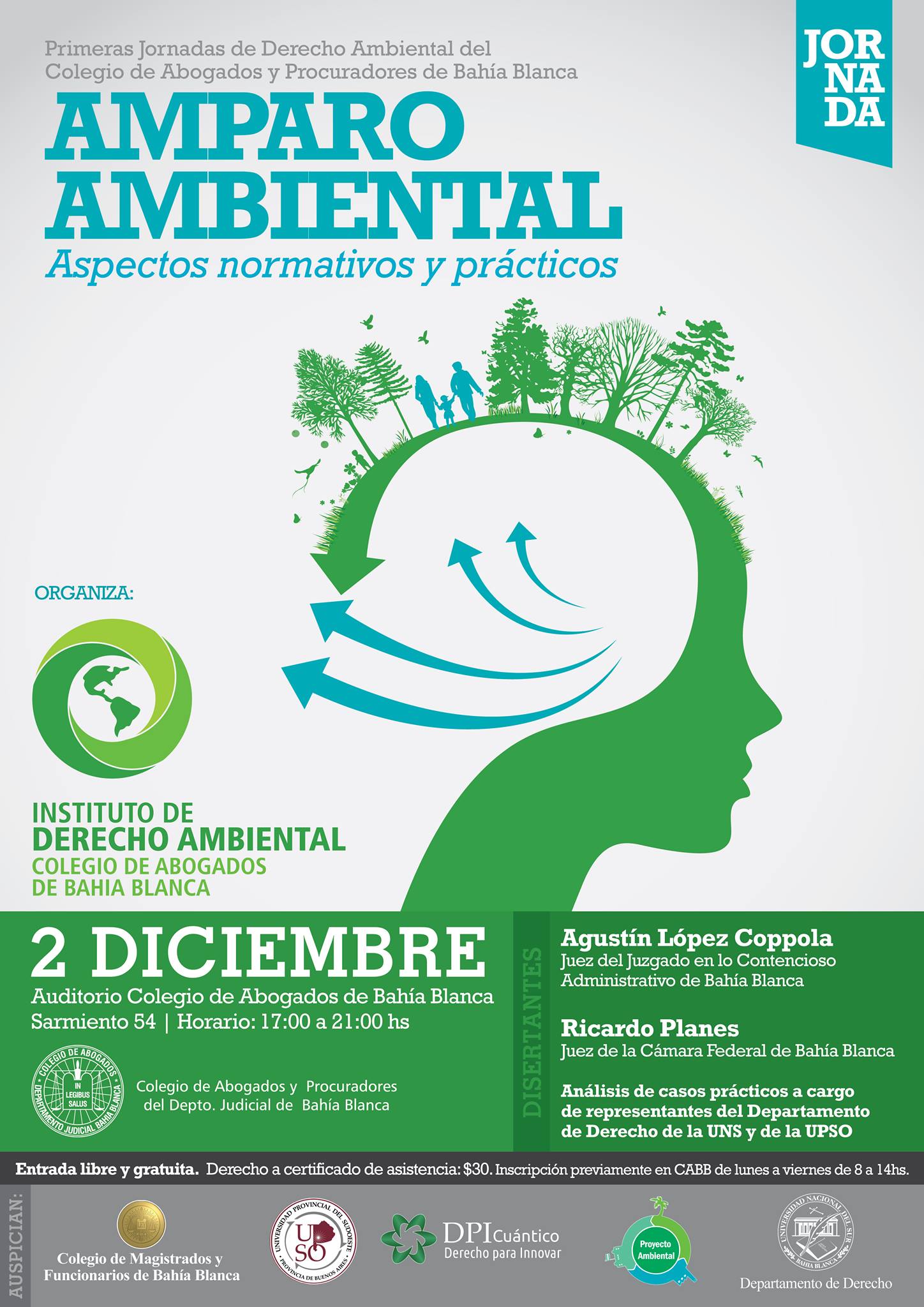Tenemos el agrado de invitarlos a participar de las “Primeras Jornadas de Derecho Ambiental del Colegio de Abogados y Procuradores de Bahía Blanca”, organizadas por el Instituto de Derecho Ambiental del mismo Colegio, que tendrán lugar en el Auditorio de la Institución, ubicado en calle Sarmiento nro. 54 de la ciudad de Bahía Blanca, el día martes 2 de Diciembre de 2014, de 17:00 a 21:00 horas.