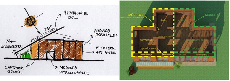 Uno de los proyectos que se destacaron fue el diseño del Equipo MADE, lo conforman estudiantes y profesionales de diversas disciplinas . Propone una vivienda sustentable, económica y de bajo impacto de gran innovación modular, al diseñarse a partir de la posibilidad del uso de palet o de un módulo triangular diseñado por el equipo de similares dimensiones que responde a las exigencias antisísmicas de fácil armado, donde la madera es la materia prima. Utiliza fardos de paja como aislantes y estuco con tierra estabilizada como masa térmica, todo esto vinculado con captadores solares en la fachada norte que en conjunto con un sistema pasivo de ventilación cruzada logran un gran confort térmico en su interior. Se plantea un uso consciente y sumamente efectivo en toda la propuesta con la reutilización de aguas y oxigenación de esta a través de humedales que finaliza en el riego del invernadero. Finalmente el uso de sofisticados paneles solares y sistemas de iluminación leed proporcionarán una óptima eficiencia energética para entregar.