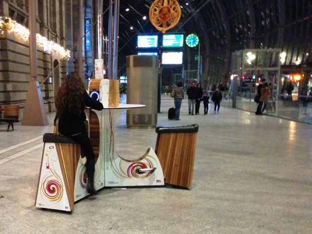 WeBike es el nombre de este escritorio que tiene pedales en cada uno de sus asientos para que hagas ejercicio mientras trabajas en la computadora o simplemente recargas tus dispositivos charlando con tus amigos en algún café, restaurante y hasta en la casa.