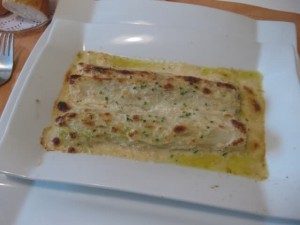 - Finalmente, solo queda montar el plato: ponemos en un plato una capa de berenjena, y encima los puerros gratinados, para terminar con la salsa, y volver a dar otro golpe de horno.