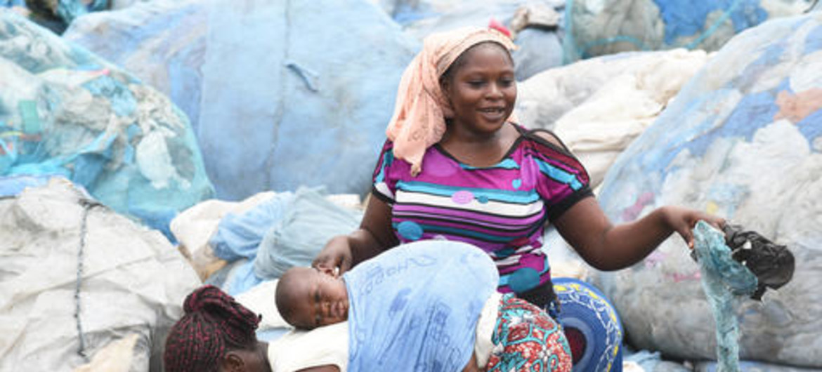 Mujeres separando desechos plásticos en Abidjan, la capital de Côte d'Ivoire.UNICEF/Frank Dejongh