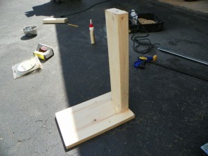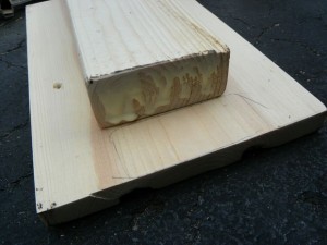 1) El primer paso es crear una estructura en madera. Para esto, coloca el tablón de madera sobre la base de madera, de forma tal que quede al extremo.